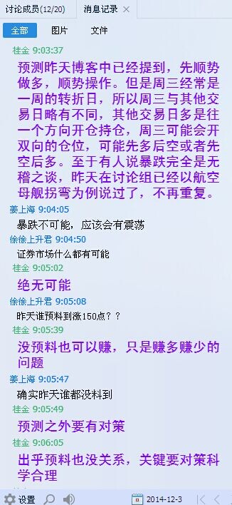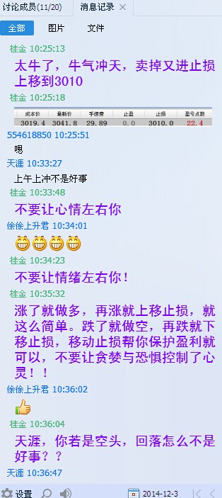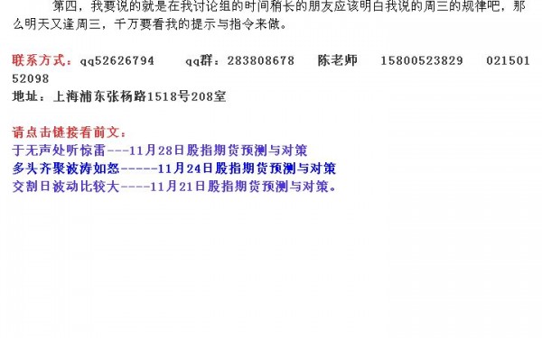 今天股指主力12月合约继续大涨近50点,涨幅1.64%。股指再次不出意料地创出新高天量等等。我们顺势交易先做涨后卖空,两头获利,获利两倍于大盘涨幅。真正做到了丰收。上篇文章我就提示了今天是周三盘中会有大的波折。今天盘中最多下跌120点,值得做空,结果我们做到了,因为预测在先,详看昨日博文截图。所以多空均收获!
