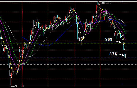 具体操作:30f级别的操作继续空单持有,这波反弹的60f级别走势精确到了55均,如果60f上没有回到89均之前,30f都不要急于看涨。5f今天的操作上午逢高空,位置大概在2965~2975之间,如果到了2980附近不能快速回跌回去就可以考虑止损观望。
