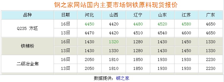7、一周相关原料市场情况(5.9-5.13): 1、钢坯市场:本周国内钢坯市场高位盘整,市场观望气氛增强。从市场获悉,自上周开始,国内钢坯市场成交量有所下降,而且成品材成交情况不佳,下游加工企业检修情况有所增加,导致本周钢坯生产企业、贸易商多持观望态度,操作谨慎,钢坯市场行情亦呈盘整状态。现唐山地区普碳150方坯主流市场现款含税价为4430元,普碳165矩形坯现款含税价为4460元,低合金150方坯现款含税价为4550元,较上周跌20元。2、焦炭市场:本周国内焦炭市场继续维持稳定,上行空间稍显迷茫。据了解,本周钢材出货情况尤为乐观,每日外采焦炭2000-3000吨,钢厂保持焦炭库存15-20天左右。钢厂采购焦炭相对较积极,但提到是否接受焦企上调焦炭价格,多数钢厂仍希望焦炭保持平稳状态。钢厂认为,随后期限电的实施,钢铁产能或将受到影响,钢厂担心在减少钢材出货量得情况下,又增加成本费用会影响钢厂整体的资金运转,导致钢材近期的活跃并没有影响到焦炭市场。预计后期,焦炭市场仍以稳定观望态势为主,涨势无力。3、废钢市场:本周废钢市场小幅下挫。周前期废钢市场资源需求改观不大,经销商对行情小幅盘整,心态上表现得也较为淡定。周后期在个别钢厂传出小幅下调废钢采购报价的消息后,商家心态多显悲观,出货积极性较高,囤货目标则多放在质量相对较好、价格高位稳定,能够有效保值的料型。废钢市场走势趋好缺少需求支撑,对于后市预期,目前钢铁行业整体走势没有明显的利弊倾向,有的只是对目前震荡格局的延续,废钢市场也不例外,预计废钢市场行情仍将维持在窄幅空间里盘整。4、铁矿石市场:本周(5.9-5.13)铁矿石市场弱势下滑。唐山地区市场先行下滑,成交颇为低迷。随着紧缩性货币政策的效果在实体经济中逐步显现,铁矿石市场的悲观气氛有所蔓延,下调趋势凸显,华北、东北地区市场纷纷回调。部分钢铁企业相继下调铁矿石采购价格,调幅在10-30元吨价,中间商压价采购的情况明显,整体市场成交一般。部分矿选企业控制发货,观望气氛颇浓。5、海运指数:波罗的海贸易海运交易所乾散货运价指数周五连续第四日下滑,因船只供应增加盖过了原材料需求的影响。波罗的海乾散货运价指数下跌1.06%或14点,至1,306点.本周下跌之前,该指数曾连涨七日。波罗的海巴拿马型船运价指数下滑2.82%,该型船舶平均获利跌至13,797美元,连续第三日下跌.该型船舶的通常运载量为6-7万吨,主要货物是煤炭和谷物。波罗的海海岬型船运价指数下跌0.27%,平均获利小幅走低至6,002美元.海岬型船舶通常的载运量是15万吨,货物主要是铁矿石和煤炭。