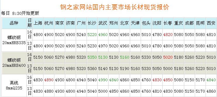 5、4月粗钢日均产量创新高 宝钢上海基地6-9月将被限电 据最新公布的统计数据,4月份国内粗钢产量达5903万吨,同比增长7.1%;日均产量为196.8万吨,创出历史新高。与此同时,4月份出口钢材环比下降14万吨。从各种渠道汇总的信息,今年国内不少地方“电荒”提前,下一步将对高用电行业实施“限电”措施。业内分析师认为,虽然近期市场借助“限电限产”题材进行运作的行为,存一定的“炒作”之嫌,但其对钢铁业的实际影响力度也不能忽略。今年的限电,主要是“因缺而限”,不少火电厂盈利空间受限,发电积极性不高,用电缺口由此扩大。宝钢相关人士告诉记者,公司已从电力部门得到确认,在6月至9月的用电高峰期,其上海生产基地将受到一定的限电影响。