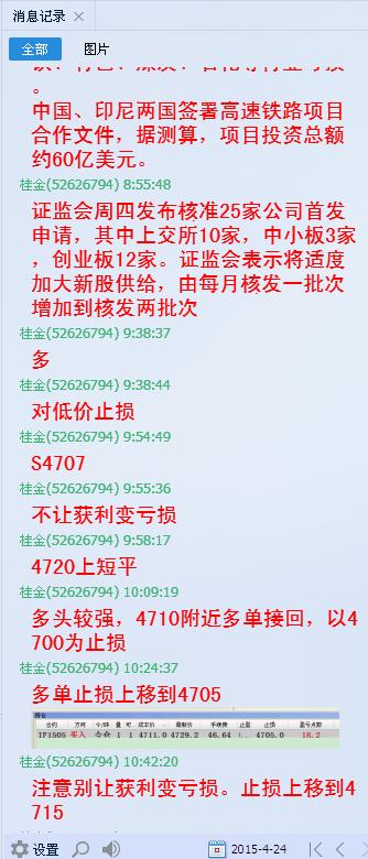 股指IF1505合约,今天一度低开低走,下午奋力拉起,收盘阳线。比上个交易日上涨6点。今天公布的四月汇丰PMI初值不理想以及证监会加大新股发行力度早盘打击市场走弱。我们没有选择做空,主要还是做自己熟悉的行情,选点做多。三单全是多单盈利,赚70点左右。