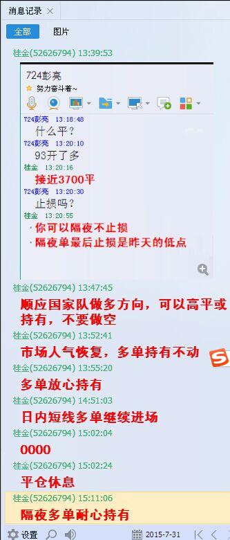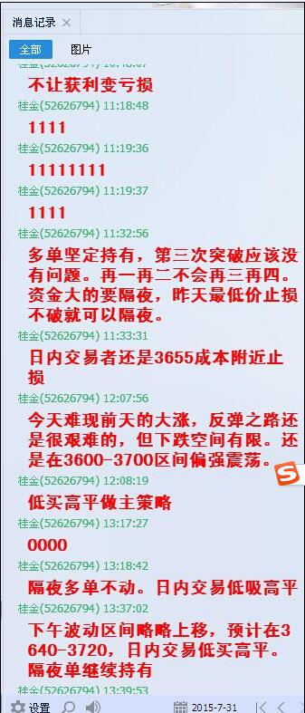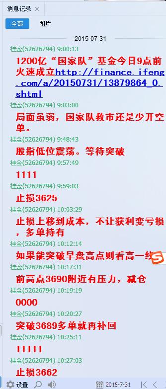 股指期货IF1508合约在7月的最后一天,波动诡异,勉力企稳。国家队1200亿基金成立的消息支撑市场止跌。终盘股指收于3693点,比上个交易日上涨36点。我们群内坚持做多为主策略,多单收获10-80点。