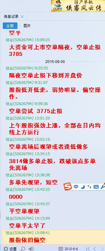 股指期货IF1508合约今日早盘低开低走很快就到达我昨天预测的下限3700点。之后股指逐步反弹向预计的上限3815,最高摸高3849.8然后迅速下滑半小时下跌100点,后震荡回升至3867收盘,比上个交易日微涨4点。我们群隔夜空单3730离场。一单尝试做空,一单是1点半创出日内最高价后提醒多单离场点3815,之后反手做空。