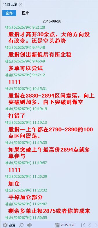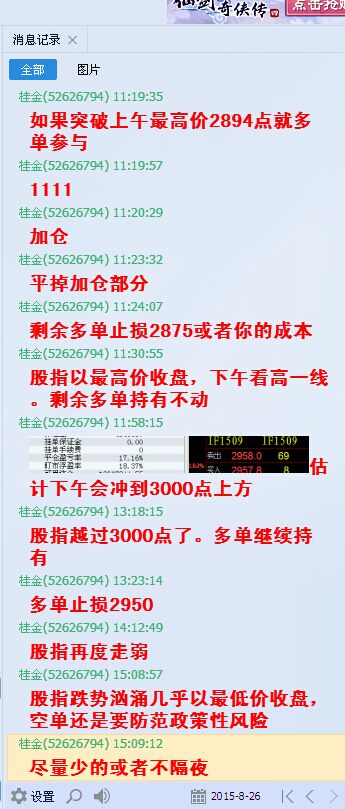 总体来看,股指10多日的下滑1000多点,本周前三天下跌700点,中金所出台措施限制期指做空,央行降息降准提供流通资金。在此政策背景下一味做空不可取,还是要保持弹性,该多就多该空就空。预计明日高点在2830一线。具体请在体验组看转发的实战群做单提示。提示代码是1表示做多,4表示做空,0表示清仓。加我QQ可进体验组。只有严格遵守自己的交易系统其交易方能把市场给出的一些机会转为财富收入囊中。只要做好你的资金管理,遵循交易原则。盈利就一定会出现。加桂金QQ52626794,体验实时做单,期货理财含保本理财!