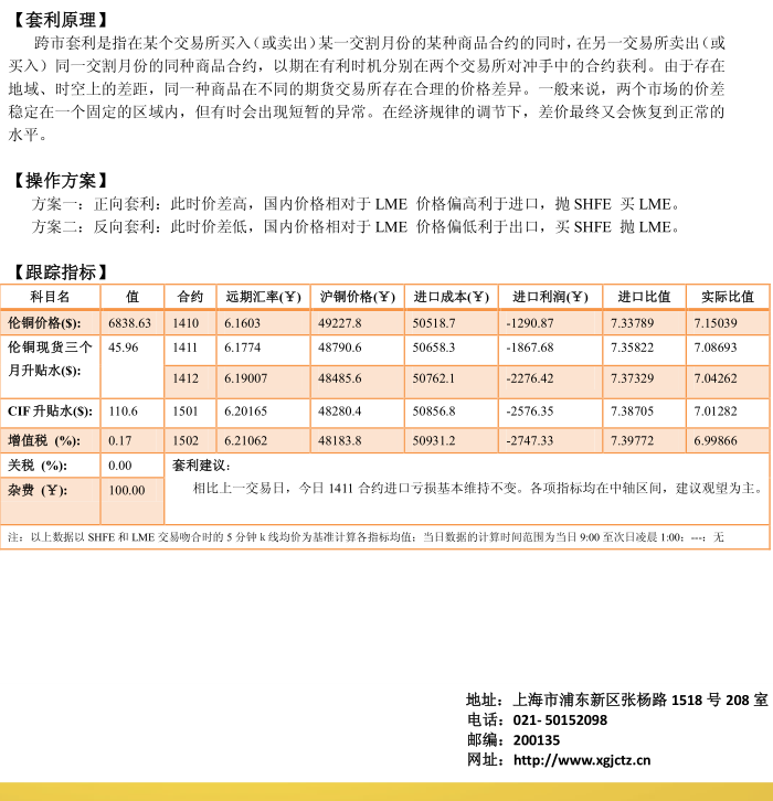 【景川投资】20140922——9月19日伦铜沪铜跨市套利报告