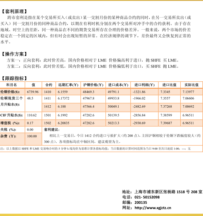 【景川投资】20140923——9月22日伦铜沪铜跨市套利报告