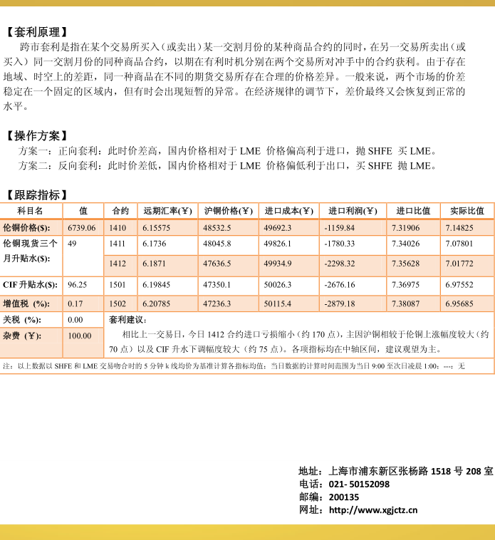 【景川投资】20140924——9月23日伦铜沪铜跨市套利报告