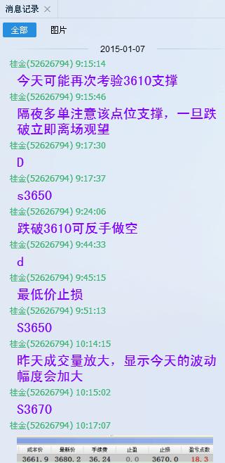 IF1501股指期货主力合约周三继续盘整,又收出一根十字星。终盘上涨收于3663,较昨天上涨8点。我们做了几个波段,总体盈利和昨天差不多,也是50多点。下面是实战群内喊单截图,其中D表示买涨做多,K表示买跌做空,S是保护性止损。