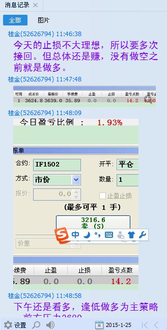 股指IF1502周五继续上涨,但涨幅进一步缩小,多头疲态初显。在几大利好的刺激下涨幅有限。我们开盘前提示做多,大的方向正确,也以小赚结束一周战斗。