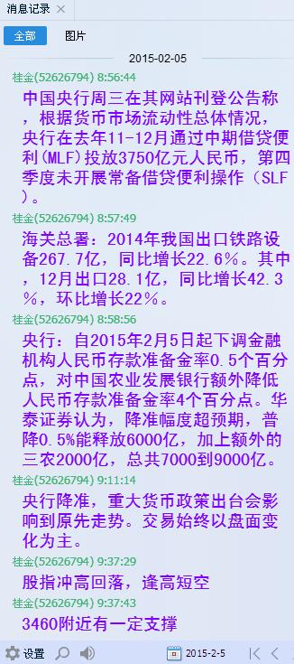 IF1502股指期货今天在利多刺激下大幅跳空高开。瞬间1分钟上涨100多点摸高至3537点,之后逐步滑落,上午见低点3431后展开一波反弹,20余分钟后即冲击3500点回落,下午再次冲击3500点失败后,掉头向下,至收盘下跌到3355点,比上个交易日下跌37点。我们开盘不久进场做空,上午10点50平掉空单后,继续等待空单机会。下午1点半前后再次追空。全天盈利140多点,再次占到全天振幅的70%。