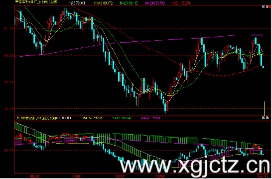 美指没有冲击81.4一线的重要阻力,图形上看形成双头,继续回调概率较大。从技术指标看处于受制于下轨如下图所示.美元对商品的支撑依旧.