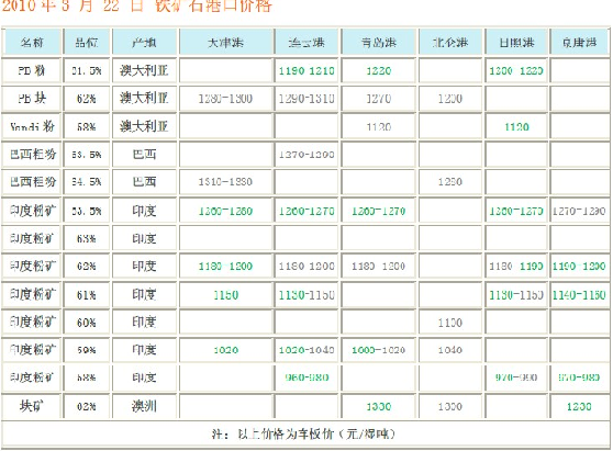 2、力拓:铁矿石需求仍然强劲 对日本钢厂正常发货 全球矿业巨头力拓集团(Rio Tinto)周二表示,尽管日本地震对全球需求带来的不确定性影响,市场对铁矿石的需求仍然强劲。力拓铁矿石部门高管沃尔什(Sam Walsh)称:“铁矿石市场仍然强劲,我们正在全力供货。现在就日本方面的影响下一个精确的结论还为时太早。”住友金属(Sumitomo)在日本的一个炼钢厂受到了地震影响,据沃尔什称现在已恢复供货 。在被问到力拓是否让一些货船转向日本时,沃尔什表示:“我们今年的大问题是已发生的3起龙卷风和3次低热带气压风暴,这让生产收到了影响,我们现在仍在力争弥补损失。”不过他拒绝透露产量受损的具体数字。