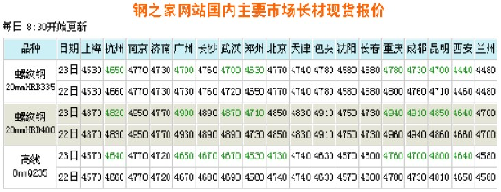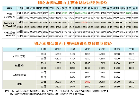 4、主流钢厂钢价继续下调 3月21日,国内数家主流大钢厂发布最新钢价政策。其中,沙钢除继续对3月中旬的钢价给销售商100-150元/吨的补贴外,对3月下旬钢价继续下调100元/吨。河北钢铁对冷扎、热轧板卷等板材品种的4月价格下调200-250元/吨,但是线材品种小幅上调100-150元/吨。另外,本钢对于4月份板材报价维持不变。鞍钢将热轧卷板下调每吨270元,中厚板下调每吨150元,冷轧减价每吨100元。同时,市场中的中小钢厂近期已数次下调钢材产品的出厂价格。而上周,宝钢、武钢则出台了以平盘为主的出厂价格政策。