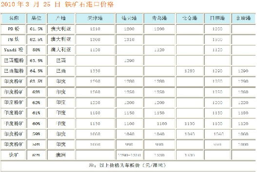 5、力拓和淡水河谷均认为铁矿石供应仍紧张 上海证券报报导,力拓集团铁矿石业务执行总裁山姆·威尔士24日在2011中国铁矿石会议上称,目前全球矿业企业与买家之间所达成的炼钢原材料(铁矿石)定价方式仍未完全解决问题。他同时认为,目前铁矿石供应仍然紧张,在可预见的未来,受中国需求的带动,全球铁矿石的需求仍然会增长。并且,日本在灾后将进行大规模重建,也会带动大量的铁矿石和钢铁需求。淡水河谷中国区总裁麦礼仕与威尔士对铁矿石供应有相同的判断。麦礼仕说,在没有新的大型铁矿石项目开工和印度铁矿石出口减少的情况下,未来几年内铁矿石供应仍将继续吃紧。对今年钢铁产业产能及产量的判断,中国五矿化工进出口商会副会长刘贻南表示,考虑到保障住房扩大消费的经济发展方针,预计今年国内市场粗钢需求总量将比2010年增加4000万到5000万吨。中国钢产量估计应达到6.7亿吨以上。刘贻南说,2011年国内对铁矿石的需求量会持续增长,而矿石价格将出现震荡运行的走势。