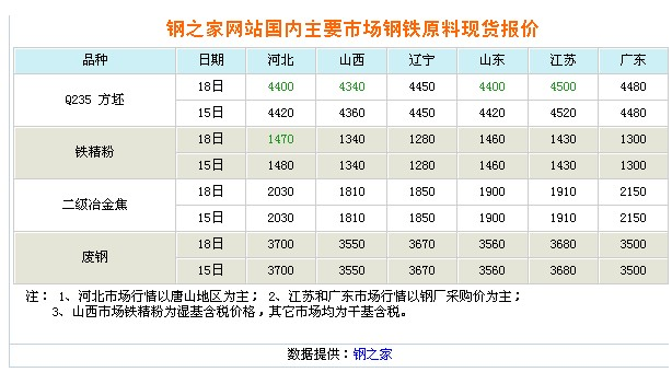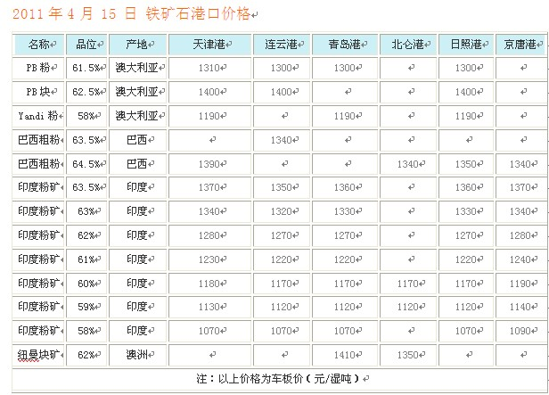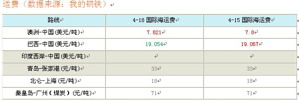 8、(4.9-4.15)一周相关原料市场情况: 1、钢坯市场:本周唐山方坯价格继续强势上涨,下游钢材市场量价齐升,市场现货资源出现紧缺,但此价位贸易商多倾向于主动出货。2、焦炭市场:华北地区焦炭出货仍然较差,价格偏稳。国内焦煤市场继续弱势,部分钢厂压低焦炭采购价的意愿增加强。3、废钢市场:本周华东地区废钢市场价格小幅上涨,受钢材、钢坯等产品价格走高拉动,各地废钢商家待涨情绪浓厚。本周江苏钢厂会议在马钢召开,会议拟定近期钢厂废钢采购定价主基调,4月整体保持稳定为主,个别钢厂将根据自身资源情况而上调废钢采购价格,但幅度不会过多。4、铁矿石市场:本周国内铁精粉价格继续小幅上涨,钢厂采购态度较为平和,市场成交一般。外盘报价继续上涨,目前63.5%印度粉矿外盘报价达到189美元/吨,较上周末上涨4美元/吨。上周进口矿港口库存8275万吨,下降80万吨,市场询盘较为活跃,成交有所增加。6、海运市场,波罗的海干散货运价指数(BDI)4月13日下跌1.34%,报1324点,连续12个交易日下跌,为3月3日以来最低水准。BDI指数今年以来已下跌逾20%,因干散货市场受困于船只供应增长速度超过了大宗商品需求。