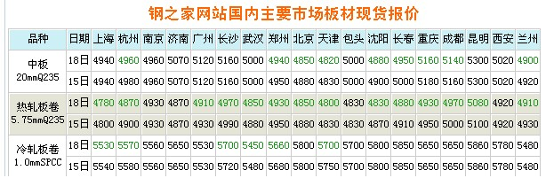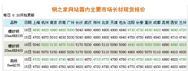 7、全国主要城市钢材库存(4.9-4.15)周变化情况: 螺纹钢库存变化(4.9-4.15)本周库存661.365万吨,上周库存684.707万吨,环比减少23.342万吨;线材库存变化(4.9-4.15)本周库存203.847万吨,上周库存213.292万吨,环比减少9.445万吨;热轧卷库存变化(4.9-4.15)本周库存464.288万吨,上周库存470.327万吨,环比减少6.039万吨;冷轧卷库存变化(4.9-4.15) 本周库存161.458万吨,上周库存163.522万吨环比减少2.064万吨;中板库存变化(4.9-4.15) 本周库存155.876万吨,上周库存156.503万吨,环比减少0.627万吨。