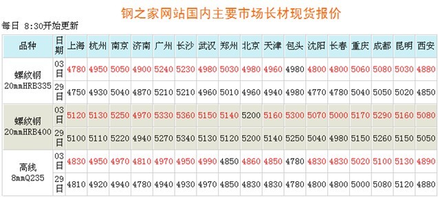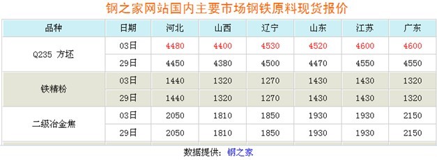 7、一周相关原料市场情况(4.25-4.29): 1、钢坯市场:本周钢坯市场坚挺向上,各地价格继续小幅攀升,市场成交情况尚可。近日国内钢坯市场将继续走强,再创新高,虽然目前限电风波再起,但钢厂方面并没有受到影响,仍在正常生产。钢坯下游带钢市场价格上调,型材成交略好,对于五一节后行情看涨较多,下游对坯料采购积极。2、焦炭市场:本周焦炭市场平稳运行,出货正常。虽然钢市整体保持上行态势,但部分钢厂反映成交状况仍不如意,致使对焦炭采购动力不足,大部分焦化企业对焦炭市场的现状较为满意,认为“焦炭价格稳住了”是好现象,上调焦炭价格意愿并未减退,并对5月初有较强的看涨心态。周内,有部分焦化厂自行下调市场价格,原因在于焦炭库存较高,为缓解库存以及资金压力,而采取暂时调整价格,使整体供需保持较为平稳的状态。近期钢材市场虽有向好行情出现,废钢市场走势却颇显迷茫,资源。3、废钢市场:供需情况改善有限,经销商囤货现象不多,且在库存量上有所控制。虽然目前市场行情趋好,但多数商家仍偏向于走货,原因之一在于,当前市场价格与心理价位较为吻合,另外,贸易商对后市预期不明朗,追高心态不强。本周废钢市场持盘整态势。4、铁矿石市场:本周铁矿石市场处于盘整态势,成交状况偏弱。周内,国内钢材市场涨势强劲,但对于铁矿石市场的推动作用却颇显有限。国产矿主导地区市场均无过大变动,目前钢铁企业国产矿库存状况尚可,由此并无加紧采购的迹象,再加上“双三十”节能减排示范工程的深入,整体市场观望气氛颇浓。进口矿市场对钢材市场的上行有所反应,部分高品位矿价格小幅拉涨。