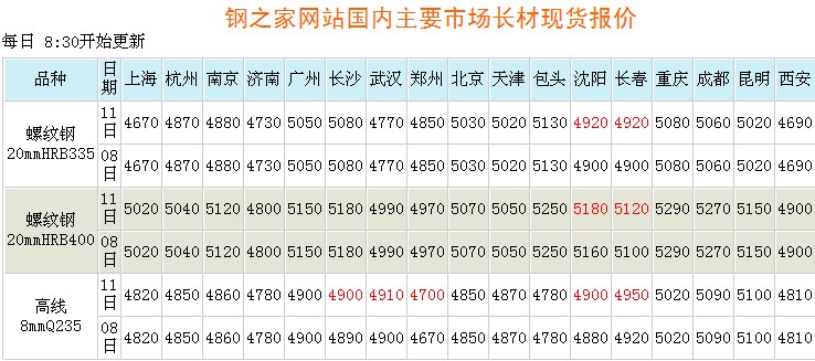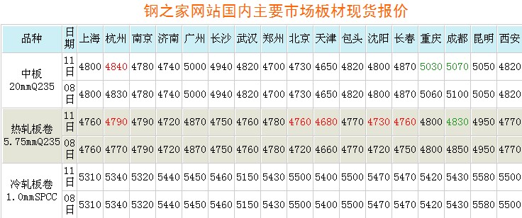 现货方面:本周国内钢材现货市场先涨后稳,本周初期,受到国际形势好转以及美国数据走好影响,国内股市及期市都表现出上涨走势。受此影响,商家信心有所恢复,市场报价也转跌为涨。随着价格的上涨,部分市场成交有所好转,不过均集中于低价资源,随着低价资源逐步消失,市场成交再显观望,商家也感觉到短期内价格继续上涨支撑力度不强,故逐步放缓报价观望市场。