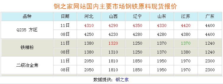 7、一周相关原料市场情况(7.4-7.8): 1、钢坯市场:本周国内钢坯市场延续上周跌势,市场需求低迷,厂商出货受阻。近期,与钢坯息息相关的建材、带钢等成品材现货价均小幅震荡,轧材企业普遍维持观望。另外,目前铁矿石、焦炭等原料价格小幅走低,钢坯成本回落。不过,目前的关键还是需求平淡,而钢坯生产企业现货库存量持续增长,资金压力凸显。于是,钢厂率先下调钢坯报价,且调幅较大,引领市场价格一路走低。 2、焦炭市场:本周焦炭市场稳定运行,价格无明显波动,整体成交情况尚可。全国焦炭市场基本稳定,主流价基本没动。近日,国家央行上调人民币存贷款基准利率0。25个百分点,吸纳社会上的显示资金。这对整个市场有一定的影响。现整个市场有所回暖,钢厂及贸易商的信心有所好转,一定程度上对普遍看跌的焦炭市场起到了一定的稳定作用;另外一方面,大部分焦化厂都在观察神华集团的态度,神华集团需根据市场做出调整计划,近期内焦炭市场将以稳中小幅调整为主。 3、废钢市场:本周废钢市场稳中小幅调整,价格波动幅度较大,整体成交情况一般。前期,贸易商不肯成交,多等待价格上涨,正如贸易商所期待的,边角料价格小幅上扬。近期近期钢厂库存较小,大量补充库存,外地废钢资源较少,使得本地废钢价格有所上扬,部分贸易商还有惜货心里,但整体市场处于消费淡季,废钢价格很难会有很大起色。在目前大环境趋弱的市场下,不能仅仅靠钢材和钢坯的短暂期稳来研判市场是否真正得到转变。后期废钢市场的走势将紧随钢材市场走势。4、铁矿石市场:国内铁矿石市场略显活跃,部分地区小幅反弹。周内,国内钢材市场的“意外”上涨,使得部分矿选企业提价销售,但受制于钢厂政策,上调幅度不大。由于整体市场上涨趋势不明显,且成交量依然不大,大部分矿选企业保持观望。由于仍处需求淡季,钢材市场的价格上涨不具备持续性,因此对铁矿石市场的支撑力度有限。预计后期铁矿石市场活跃度有限,将处于涨、跌两难的状态。5、海运指数:波罗的海贸易海运交易所乾散货运价指数。BADI周五转为下跌,因在本周稍早的活跃表现後,较大的海岬型船运输需求放慢。 波罗的海乾散货运价指数下跌0.28%或4点,至1,449点,此前连涨三日。该指数近几周走势不稳,今年跌幅已经接近20%。波罗的海海岬型船运价指数。BACI下滑0.52%,海岬型船舶平均日获利降至13,941美元,本周稍早曾升至1月以来最高。该型船舶的通常运载量为15万吨,货物主要是铁矿石和煤炭。波罗的海巴拿马型船运价指数。BPNI升1.26%,该型船舶平均日获利达到13,458美元。该型船舶的通常运载量为6-7万吨,主要货物是煤炭与谷物。