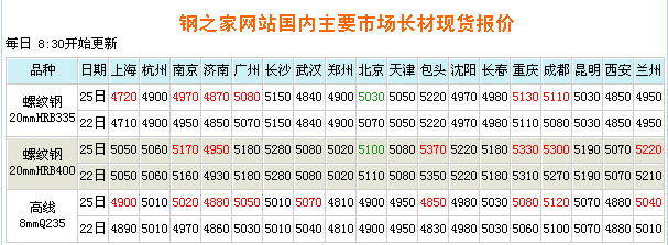 7、一周相关原料市场情况(7.18-7.22): 1、钢坯市场:本周华北、东北钢坯市场继续上涨,其它区域以高位盘整为主,国内整体钢坯市场续涨动力明显不足。近期,钢坯市场表现得较为积极,不过,在价格在连续拉涨后,目前钢坯价格整体处于高位,中间商拿货开始犹豫,调坯轧材企业也以按需备料为主。另外,下游成品材市场价格涨幅不大,也令钢坯市场有了“后顾之忧”。 2、焦炭市场:本周国内焦炭市场出货情况稍显乐观短期内仍维持稳定观望。近期钢材市场盘整运行,为了原料成本资金的正常运转,钢厂对焦炭采购一直保持谨慎态度,但整体采购量仍无大变化,导致焦化厂生产情况达到满负荷状态。对于后期焦炭市场价格能否提升,钢厂具有一定话语权,但最近钢厂弱势盘整状态对焦炭采购一直持稳,钢厂焦炭库存始终维持正常水平,焦炭市场如今稳定现状应是大局。预计,短期内焦炭市场仍以稳定观望为主。3、废钢市场:本周废钢市场整体上扬。近期废钢市场厂商多按需采购,资源供应偏紧依旧是主要问题,钢厂到货不佳。部分钢厂在收货较为困难的情况下小幅上调废钢采购价,以期提升上货量,好料型的废钢采购价格上调幅度比料型偏差的上调幅度大。目前废钢市场由于资源紧、加之钢坯价格上涨影响,商家惜售心态浓厚。预计近期废钢市场将以稳为主,小幅调整。4、铁矿石市场:铁矿石市场较为稳定,部分地区微涨。周内,国内钢材市场出现调整态势,厂商观望气氛有所加重。对于铁矿石市场而言,需求仍较稳定,对整体市场形成一定支撑。华北、东北地区铁矿石市场仍表现小幅探涨态势,整体涨幅从上周的30-40元/吨,收缩至10-20元,显示出高价位对市场已形成压力,虽然市场仍保持一定的成交量,但价格继续上涨表现乏力。钢铁企业采购价格维持较稳,由于市场现货资源较为缺乏,部分钢厂上货量有限,钢厂为保证上货量,采取了相对稳定的采购政策。近期,铁矿石市场已进入高位区间,因钢材市场未明显下滑,国内铁矿石市场将保持坚挺态势,但市场观望气氛开始上升。5、海运指数:波罗的海贸易海运交易所干散货运价指数BDI周五连续第11个交易日下跌,巴拿马型船舶市场的强势不敌海岬型市场的疲弱。干散货运价指数BDI下跌2点,或0.15%至1,323点。该指数今年介于1,300至1,500点之间交投,因船舶的过度供应超过了大宗商品的船运需求。波罗的海海岬型船舶运价指数BCI下滑0.54%,海岬型船舶平均获利降至10,806美元。该型船舶的通常运载量为15万吨,货物主要是铁矿石和煤炭。波罗的海巴拿马型船运价指数BPI升0.07%。该型船舶平均获利报12,256美元。该型船舶的通常运载量为6-7万吨,主要货物是煤炭与谷物。