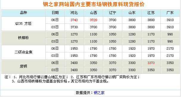 10、一周相关原料市场情况(2012.1.30-2.3): 1、钢坯市场:本周国内钢坯市场并未出现传统的“开门红”,华北、东北地区价格继续弱势下行。目前,节日氛围依旧浓郁,市场运作尚未步入正轨,下游需求也未明显放量;上游原料焦炭、矿石整体行情难现涨势,钢坯市场缺乏上下游的支撑,行情仍然疲软。但是,目前钢坯价格明显偏低,为此部分商家对钢坯价格上涨预期有所提升。预计元宵节后钢坯价格或显短暂震荡上涨行情。 2、焦炭市场:本周焦炭市场稳定运行为主,零星涨跌互现。节后下游钢厂未全面开工,经过假期的消耗,钢厂焦炭库存量降低,但整体焦炭的库存仍维持在正常的水平,然钢市不见好转,鉴于钢市的疲软运行,下游谨慎操作,按需采购,随采随用,加之东北部分钢厂小幅下调2月份的采购价,加剧了当地焦企看空心;焦煤市场维持弱稳,煤矿虽陆续恢复生产,但部分地区资源仍较紧张,煤企心态偏弱,虽焦化厂及钢厂的需求稍显平淡,但焦煤价格普跌暂难,短期或稳中趋弱运行;下游需求不足,焦化厂出货较年前没有明显变化,成交一般,钢厂周边焦企走货尚可,资源外销较多的地区走货受阻,部分厂家库存积压,焦企暂时观望的心态较浓。预计短期在下游需求难回落及上游成本支撑下,焦炭多数应维稳。 3、废钢市场:本周废钢市场小幅盘整。春节长假结束,虽然股市期货有上涨态势出现,成品材市场也小有上涨,不过这只是节后的技术性上调,钢市实际成交低,所以对废钢市场也没引导作用。虽然多数经销商已经开门营业,但基本上没有资源成交记录,节前多数钢厂资源库存充裕,暂时也未启动采购计划。据商家称,市场正常营业要元宵节后,近期也就是询盘问价,实际交易的很少。目前废钢市场供需矛盾不凸显,厂商仍在观望中,预计近期废钢市场行情变动不会太大,将小幅盘整。 4、铁矿石市场:本周铁矿石市场小幅上扬,盼涨气氛有所提升。节后,国内钢材市场出现一波上涨行情,由此带动铁矿石市场小幅上升。然而,大部分钢铁企业尚未批量采购铁矿石资源,整体市场难以形成实质性上涨,供需双方处于僵持状态。现阶段矿选企业尚未全面生产,市场可供资源量有限,个别钢铁企业内铁矿石库存出现短缺,少量补库,带动铁矿石市场出现“地区性”上涨局面。进口矿市场也小幅走高,但实际成交尚未跟进,虽然贸易商盼涨心愿较强,市场仍显上涨乏力。预计下周铁矿石市场仍表现为“试探性”上涨的状态。