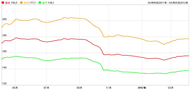 7、一周相关原料市场情况(2012.4.2-4.6): 1、钢坯市场:本周国内钢坯市场呈现小幅波动调整的走势,市场成交一般。进入4月后,厂家依旧期待钢坯价格上涨,但由于终端市场低迷,导致钢坯出货迟迟不见起色,部分厂家虽有试探性拉涨钢坯价格的举动,但最终都无功而返。纵观当前钢坯市场,厂家库内资源不多,拉涨较迫切;而轧材厂在订单不足的情况下,采购积极性不高;中间商手中资源充盈,出货一般,但并不急于低价甩货。随着4月中旬的到来,钢材需求继续缓慢释放,多数钢坯厂商对后期报以谨慎乐观的态度,因此预计下周钢坯市场有望出现小幅上涨的行情。2、焦炭市场:本周国内焦炭市场弱势盘整。假期前,山东地区焦炭市场出现小幅下滑现象,主要受当地钢厂下调焦炭采购价格因素所致,河北、山西地区市场运行表现较稳,但市场下行压力依然较大。目前炼焦煤等资源供应相对充裕,加之需求状况不佳的情况下,继续下调的可能性较大,而焦炭市场需求依然较为清淡,促使焦炭市场继续走低的趋势凸显。短期内市场呈弱势盘整态势。3、废钢市场:本周废钢市场小幅下滑。近期金融市场窄幅震荡,成品材市场亦震荡不稳。在资源需求不佳的制约下,废钢市场对后市看涨心理受阻。目前钢厂对废钢的采购需求没有明显提升,部分钢厂出台废钢采购计划,预计采购量将会出现大幅度减少情况。经销商库存不大,资源偏紧支撑废钢价格,而下游钢材需求不旺又使钢厂极力控制成本,调整废钢采购价格,在此情况下,废钢市场涨跌皆难。预计近期废钢市场将持稳运行。4、铁矿石市场:本周国内铁矿石市场整体维稳,部分地区小幅上扬。周内,东北、华北地区在生产及市场资源偏紧等因素的影响下,市场报价小幅上扬,其它地区以稳为主。进口矿市场平稳运行,成交情况停滞不前。本周虽有钢厂小幅上调铁精粉采购价格,但多为顺应市场行情,对推动市场上行作用不大。目前,钢铁企业对于铁矿石等资源的采购仍然偏于谨慎,铁矿石市场短期内较难出现突破走势,但后后期市场仍呈坚挺态势。