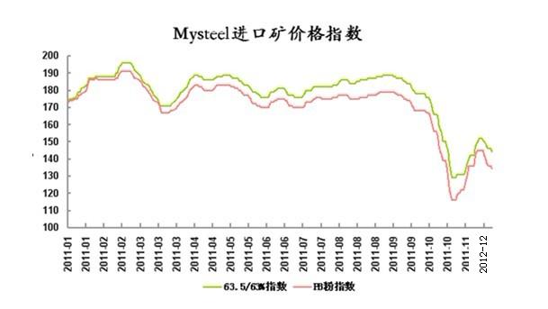 9、2012年 4月 6日Mysteel 进口矿价格指数 4月6日Mysteel进口矿价格指数不变,63.5/63%印粉指数为150,53/52%印粉指数为103,61.5%澳粉指数为147。我的钢铁网铁矿石综合指数报收156.1,较昨日跌0.45%,进口矿指数142.8,国产矿指数报收162.3,较昨日跌0.61%。