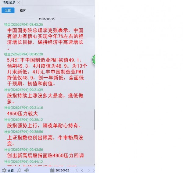 股指IF1506突破4月份高点后,开始和中小板一样飙升,阳线连阳线,丝毫不流连。周五股指高开后迅速飙升到4950一线,然后在4890-4950区域盘整一个多小时后突破4950震荡上行。下午突破5000的整数关,收盘于5022,比周四收盘上涨120点。隔夜单持有不动获利丰厚,我们日内单子开盘没有和周四一样开盘就介入,先贴近4950短空操作一下。10点半以后股指回补了跳空缺口后,空单退场,明确不再做空转而做多。11点后股指一波下跌从4970下跌到4908,打破日内止损,后回到均线上方再做多接回,反复几次,但是我们的主策略始终是做多。当日盈利大的也有100点以上。