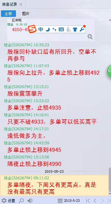 具体走势得市场说了算。预测只是预测,交易者最要紧的是注意对策。具体操作提示可在实战群与体验组看到。加我QQ可进体验组。只有严格遵守自己的交易系统其交易方能把市场给出的一些机会转为财富收入囊中。不要怀疑,不要总想还能涨吗,会不会突然掉下来。只要做好你的资金管理,遵循交易原则。盈利就一定会出现! 欢迎咨询购买本公司理财产品。