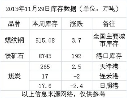 后势研判:随着冬季的来临,北方需求减弱已成定局,4季度国内的投资增速或将稳中有降,钢市需求也将有所趋弱。化解钢铁过剩产能细则落地发改委、工信部和中钢协在日前举行的钢铁行业贯彻落实国务院《关于化解产能严重过剩矛盾的指导意见》会议上提出,将加强钢铁行业规范管理,坚决抑制新增产能投资,严禁新增产能项目。其中,工信部将开展7项工作抓好化解产能矛盾工作,新一届政府先捋顺政治环境,再研究经济,产能抑制与环保整治,对螺纹钢价格形成支撑。但央行货币政策中性偏紧,短期内国内流动性依旧偏紧,经济发展放缓的局面才刚刚开始,受流动性紧张影响,虽然备库季节性周期再现但钢厂冬储形势不明朗,总体而言,对螺纹来说,目前处于平衡市,不可能出现大幅上涨,但短期中性偏多。